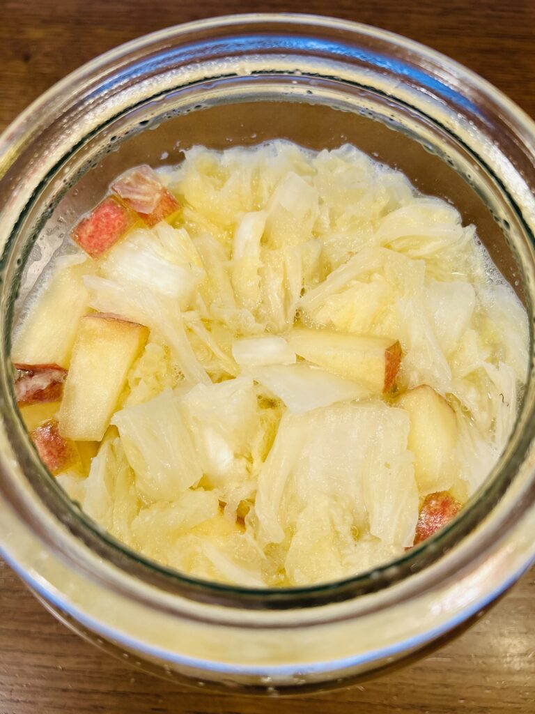 水キムチが発酵してシュワシュワと乳酸菌が増えるには、菌のエサとなる「糖分」が必要です。